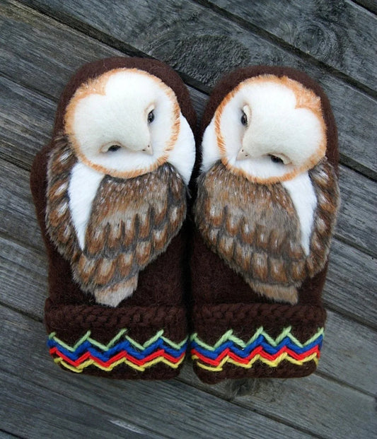 Naotstore - Hand Knitted Wool Nordic Mittens with Owls