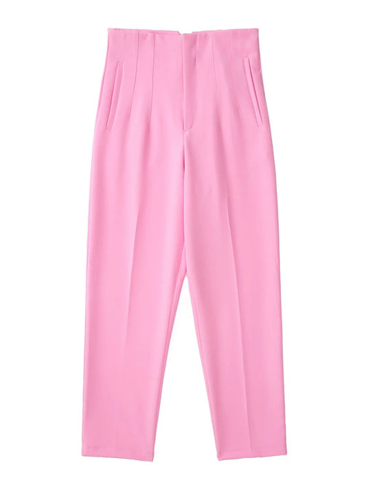 Naotstore - Straight Pants High Waist Zipper Fly Trousers