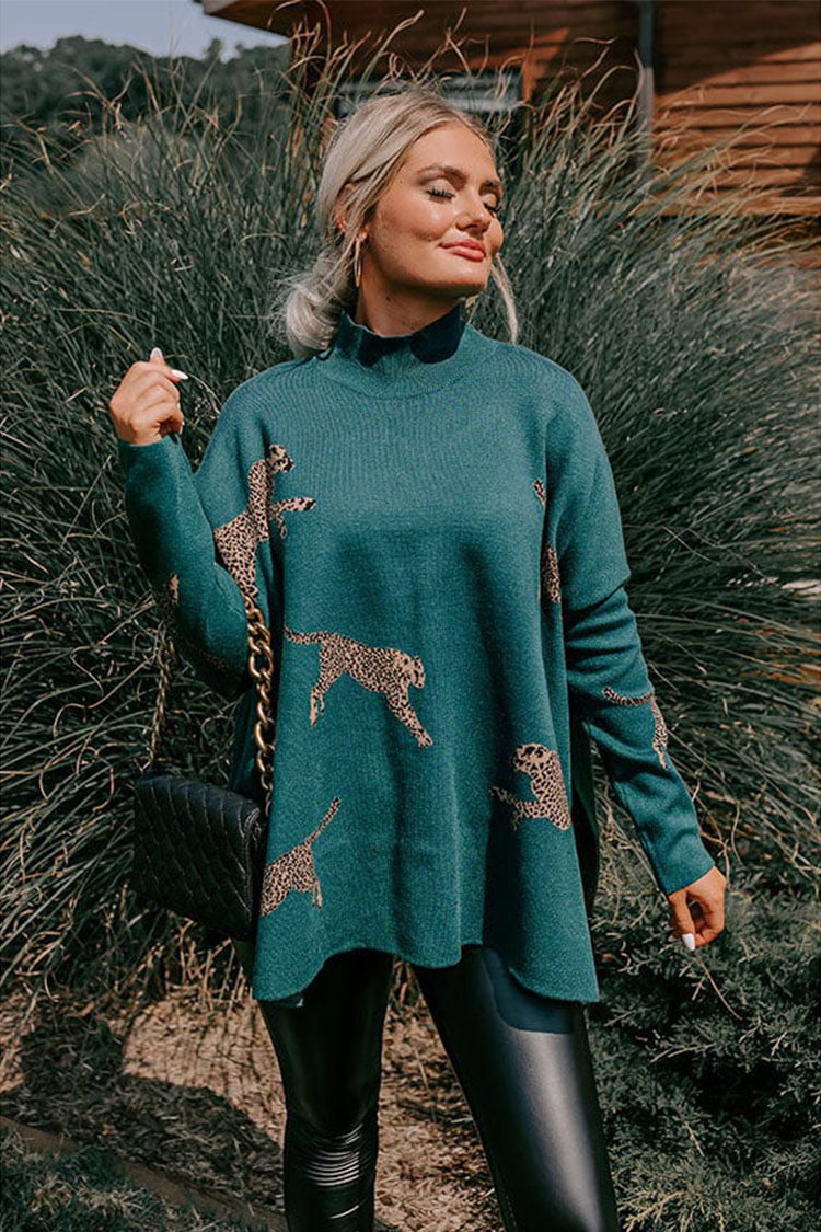 Designed with a relaxed fit, this sweater offers a comfortable and laid-back vibe that is perfect for everyday wear. The tiger print adds a touch of texture and detail, enhancing the overall aesthetic of the sweater.