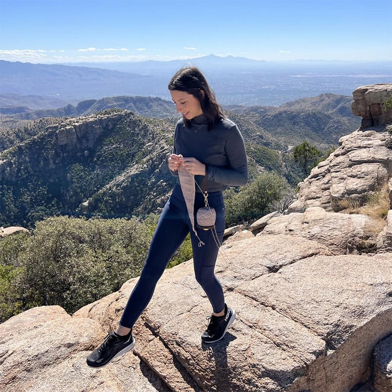 Introducing the Mini Minder (USPTO Patent Pending) the ultimate companion for every knitting and crochet enthusiast. Place your yarn ball on the Mini Minder and effortlessly hang it on your wrist, attach it to your project bag or honestly hang it just about anywhere. Stay organized and keep your yarn conveniently within reach wherever you go. Say goodbye to yarn mess and hello to portable convenience with the Mini Minder.