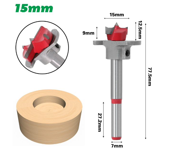 Can be used for drilling holes in wood and plastic products, furniture, door hinges. Used for cutting wood, plywood, solid wood board, MDF, plastic, fiberglass, etc. The Forstner drill is suitable for the ordinary purpose